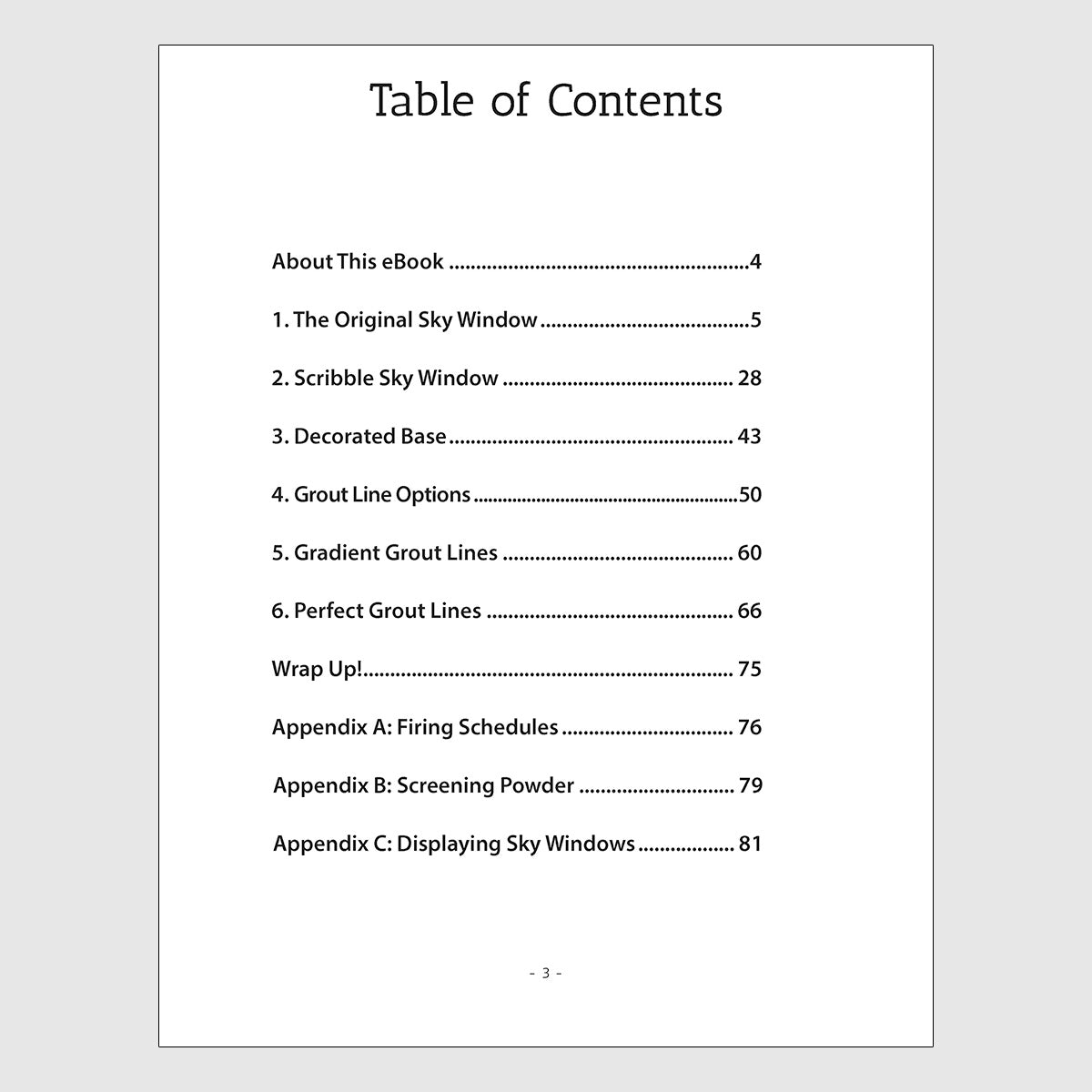 This book not only covers everything taught in Sky Windows, it goes well beyond what students learned in the classroom. New material in this book includes working with designs below transparent tiles, additional methods for creating the mosaic tiles, creating stunning color-fading grout lines, and a way to build a mosaic with perfectly consistent grout lines without spending hours at a grinder sizing tiles. And, as a bonus, readers will learn how to make sgraffito text tiles and paint a feather with powder.